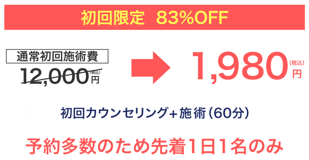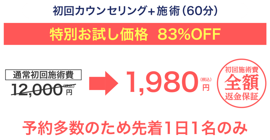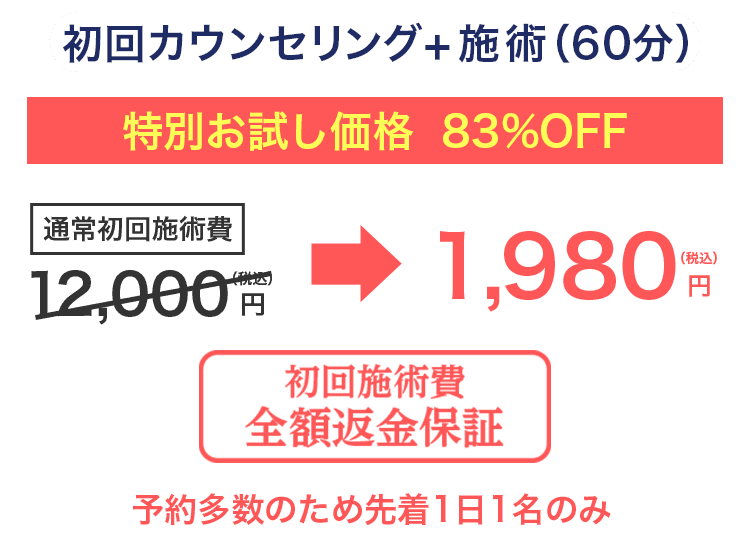 ここまで聞いてまだ不安なあなたへ初回の施術で効果を実感できなければ施術費を全額返金します。