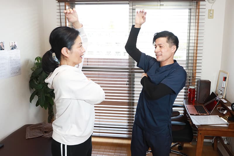 お客様の痛みを改善するために、私は傾聴から始めます。どのような身体の状態になりたいのか、問題意識・目標を共有し、怪我などの経歴や痛みの原因を詳細に聞きます。また、当たり前のことかもしれませんが、話しやすい空間作りを徹底し、熱意を持ち、痛みの改善に取り組んでいます。