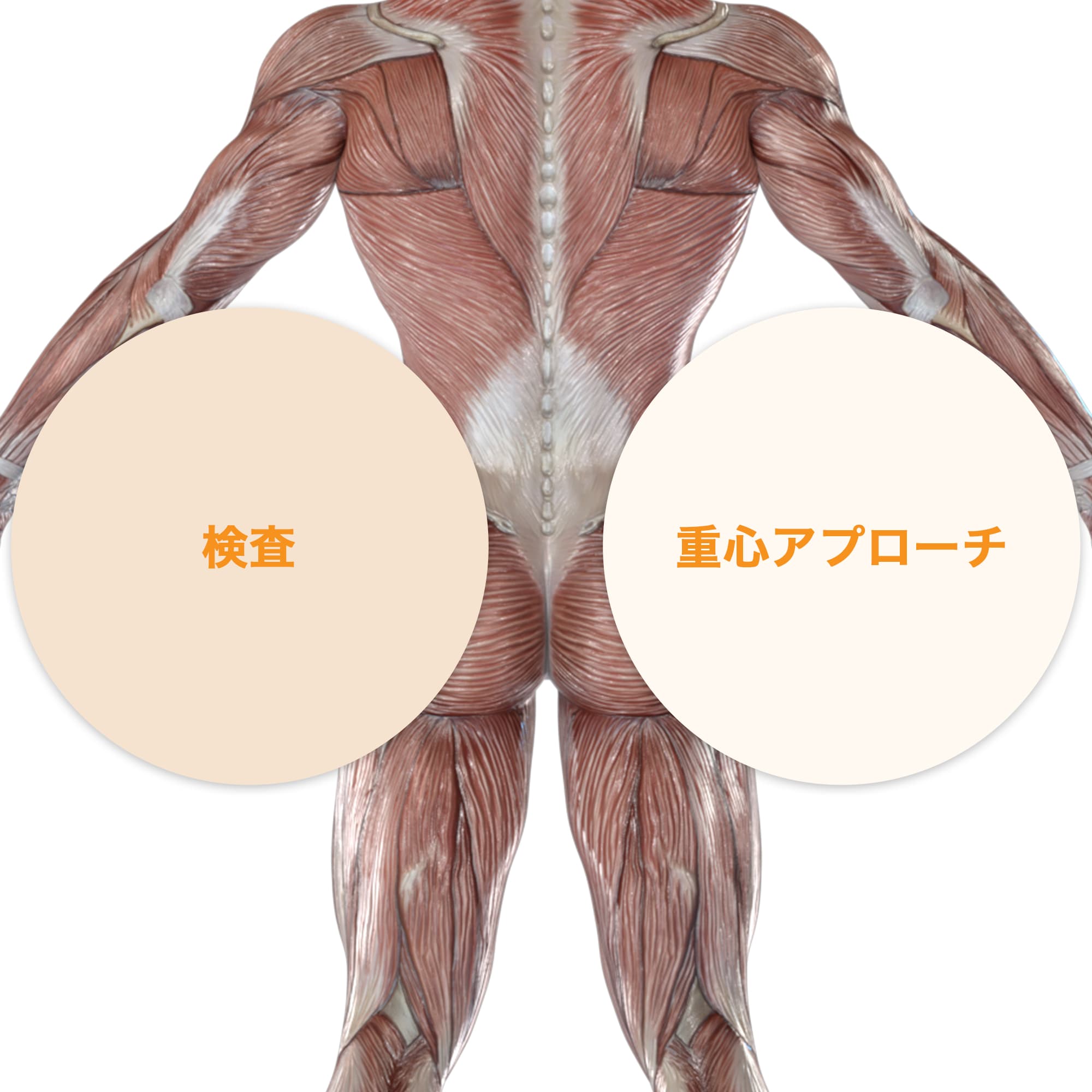 また、身体の使い方に偏りがあることも痛みの大きな原因になっていることが多いです。その場合には「重心アプローチ」というメソッドを使って、身体の重心を本来の正しい状態に調えていきます。